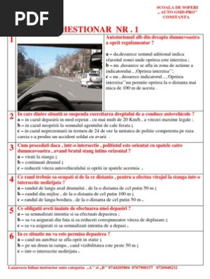 Chestionare Auto Categoria B Chestionare Scoala De Soferi