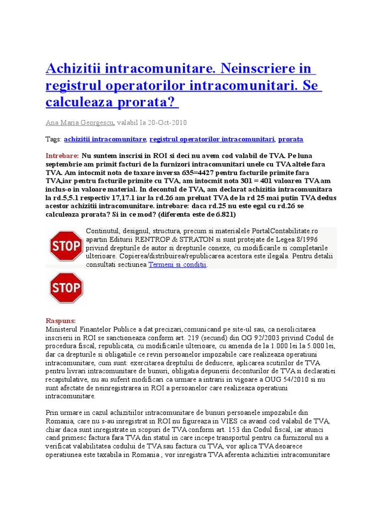 Achizitie Intracomunitara De Bunuri Cum Facem Monografia Contabila