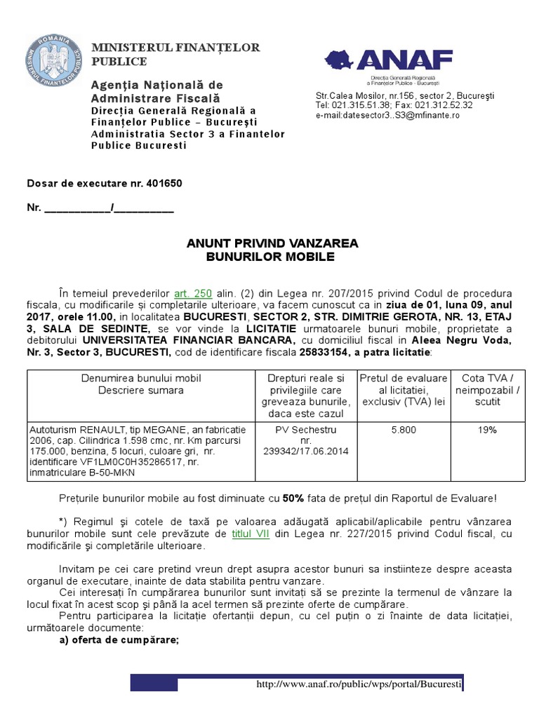 Pdf Ministerul Finanţelor Publice Agenţia Naţională De Administrare Fiscală Direcţia Generală Regională A Finanţelor Publice Bucuresti Administraţia Sector 1 A Finanţelor Publice Pagina 1 Din 2 Miruna Olteanu Academia Edu