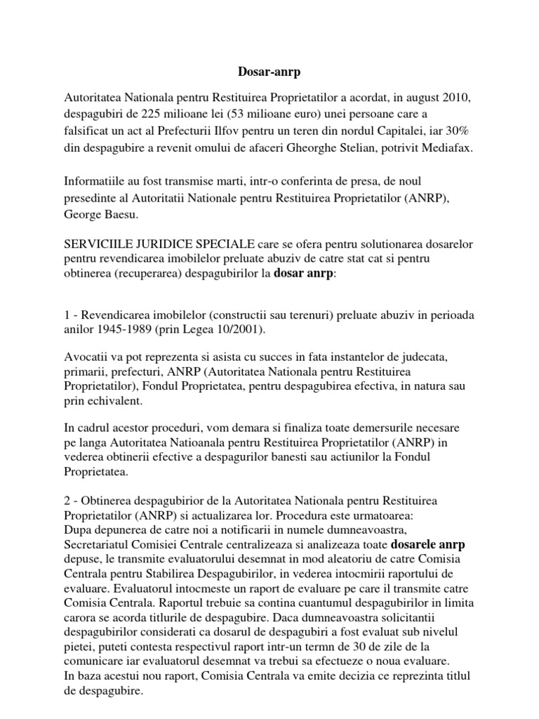 A N R P Autoritatea Naţională Pentru Restituirea Proprietăţilor Bucuresti