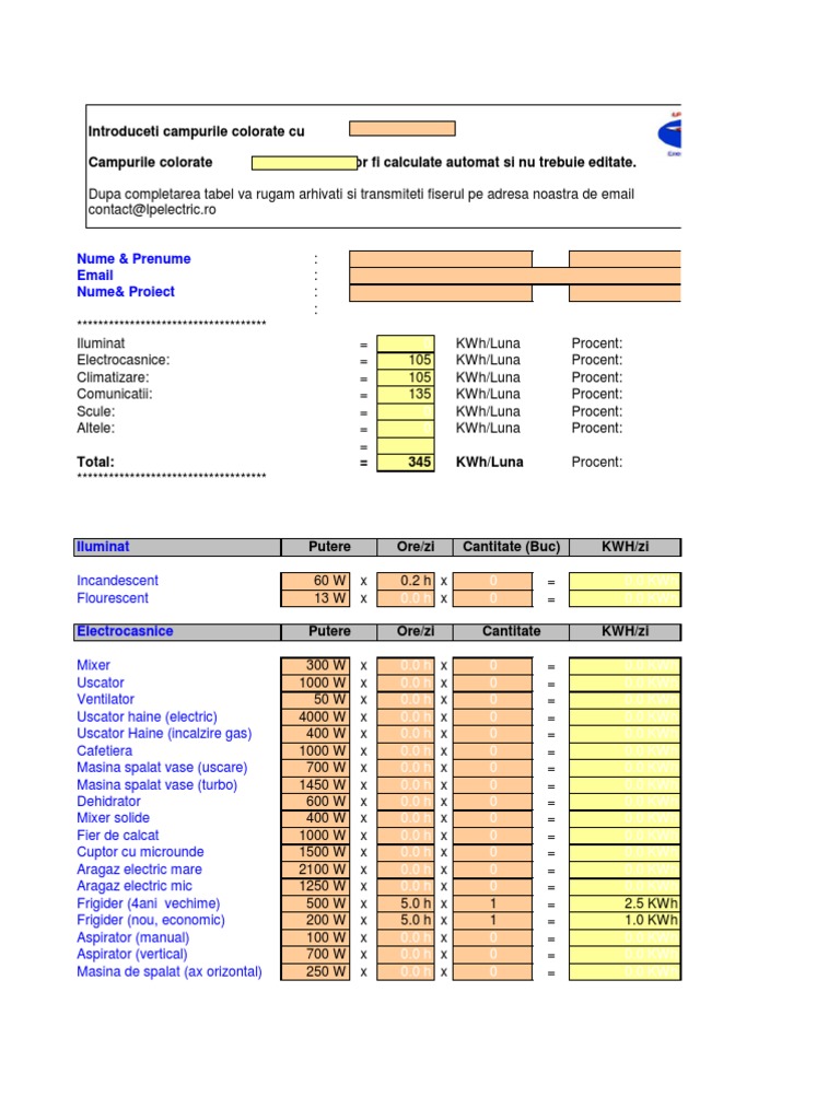 Calcul Consum Energie Electrica