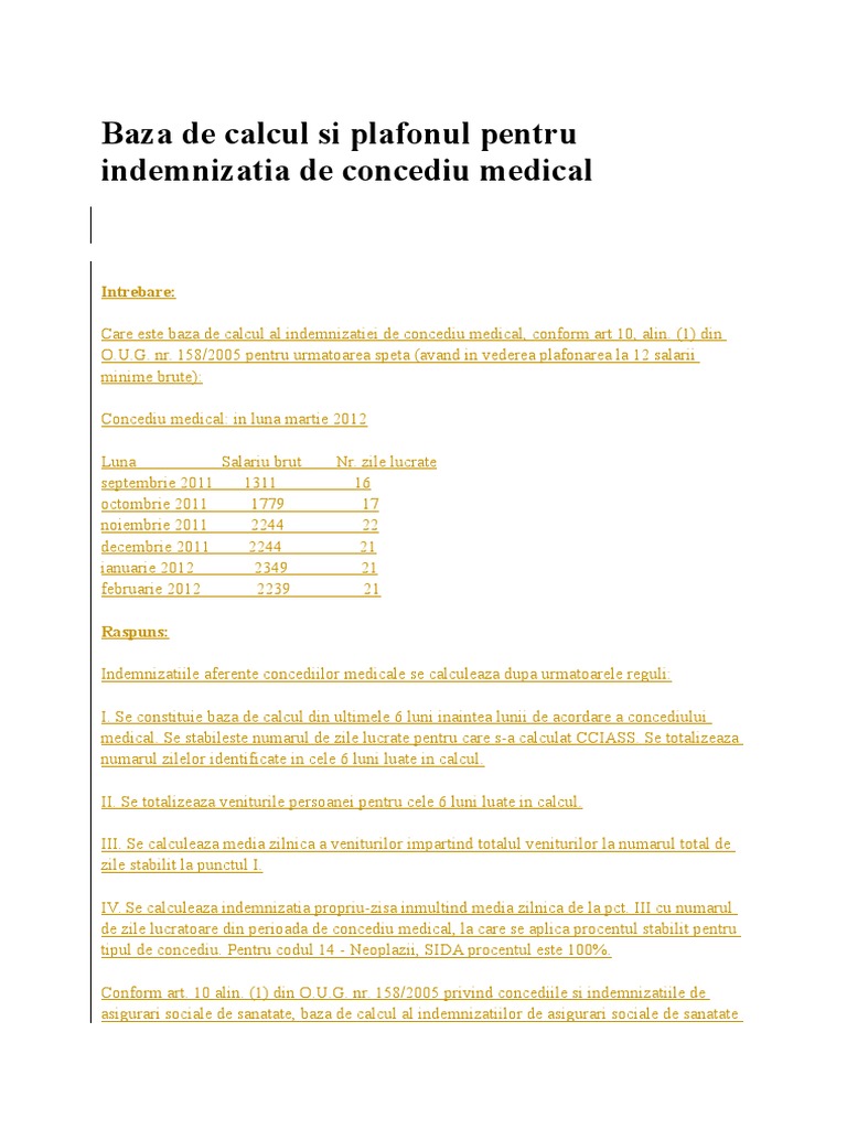 Baza De Calcul Si Plafonul Pentru Indemnizatia De Concediu Medical