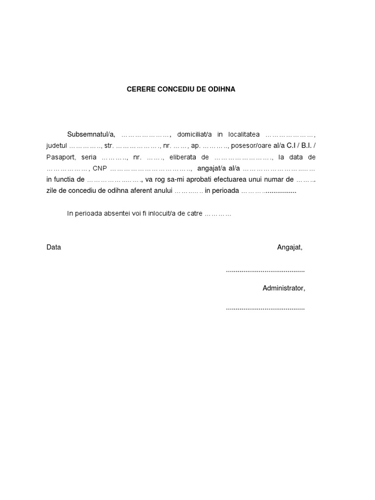 Acte Necesare Depunerea Model De Cerere De Concediu