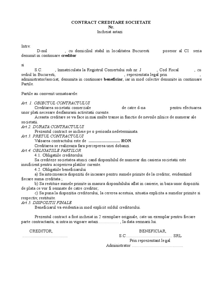 Contract De Creditare Societate Model
