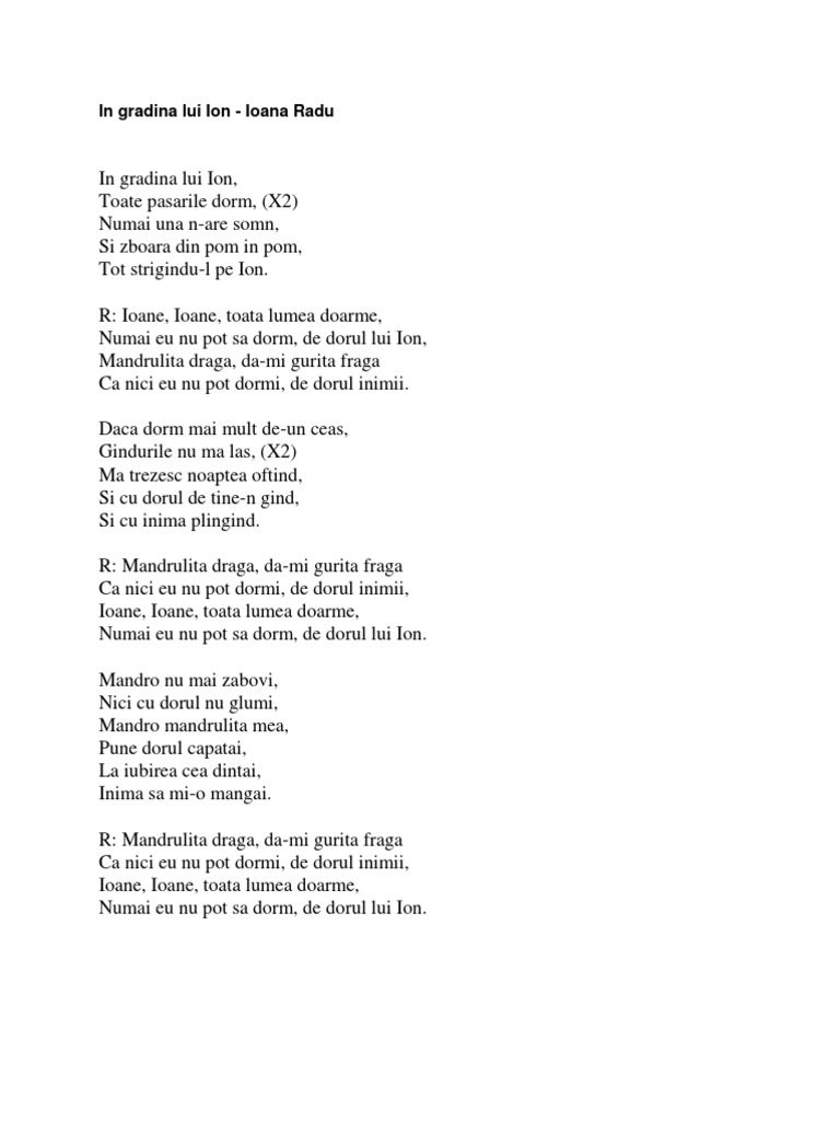 In Gradina Lui Ion Lyrics And Music By Populara Karaoke By Kinder Arranged By Ioana Apex