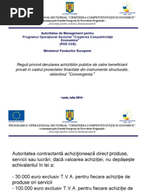 Reguli Privind Derularea Achizitiilor Publice De Catre Beneficiarii Privati In Cadrul Proiectelor Finantate Din Instrumente Structurale Obiectivul Convergenta