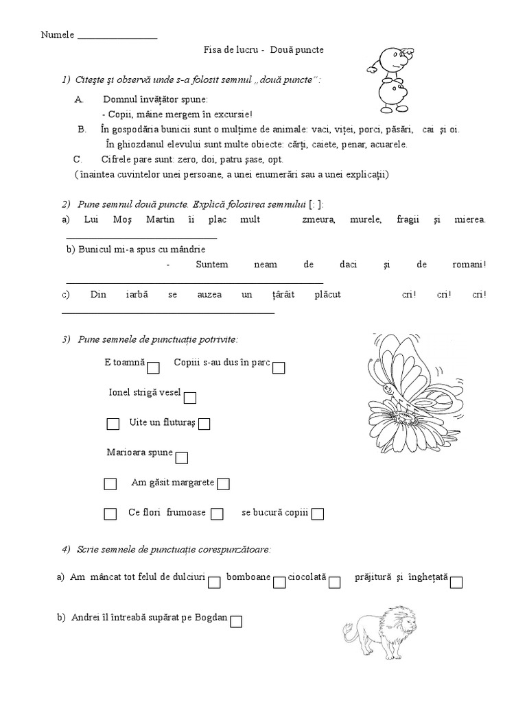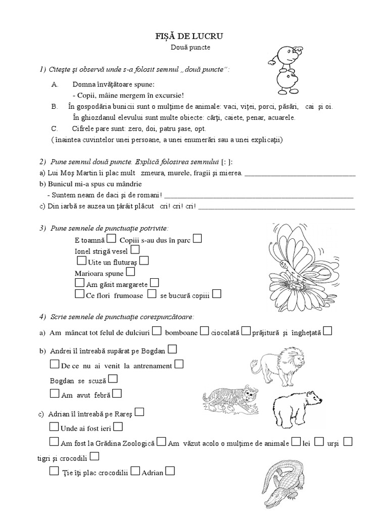Fișă De Lucru 1 Citeste Si Observă Unde S A Folosit Semnul Două Puncte
