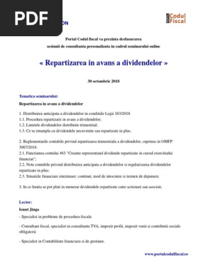 Ghid Privind Repartizarea Trimestriala A Dividendelor Srl An Infiintare 2018 Asociat Unic