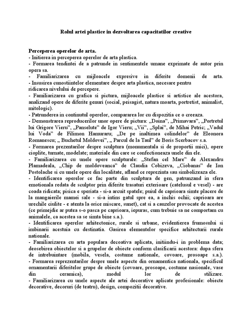 Rolul Artei Plastice In Dezvoltarea Capacitatilor Creative